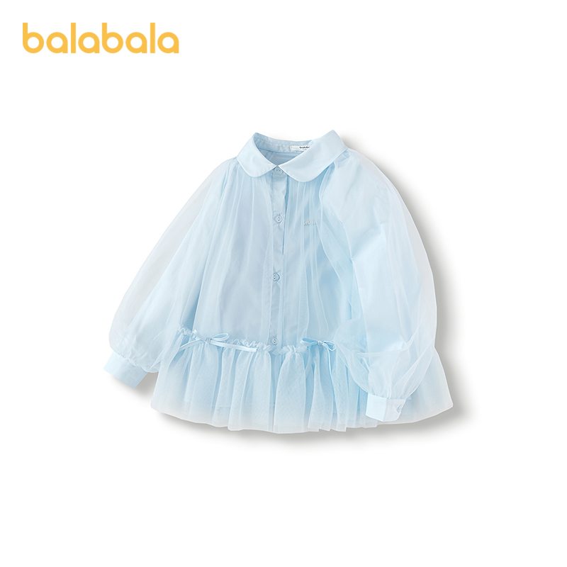巴拉巴拉儿童衬衫女童长袖衬衫春款网纱衬衣甜美201125102002