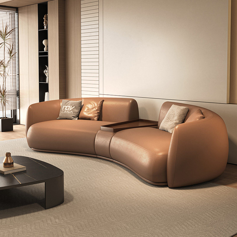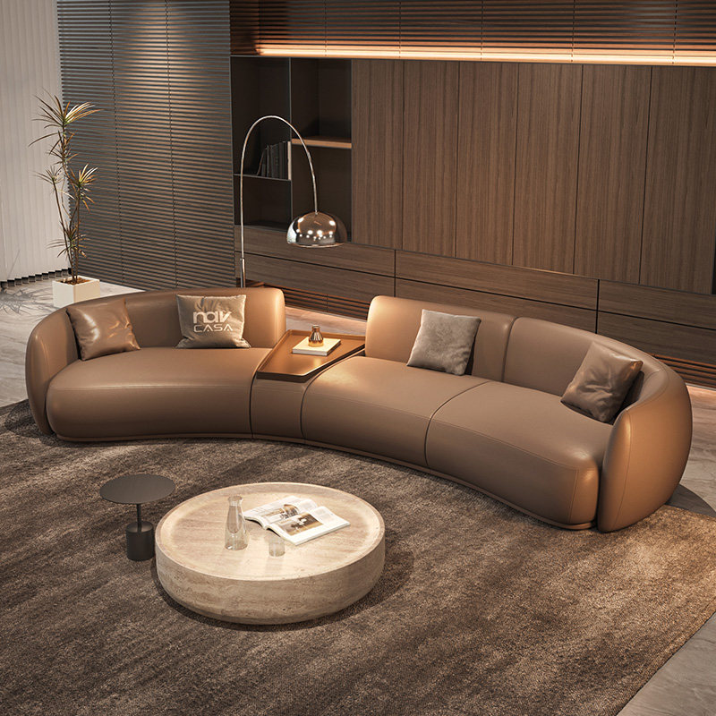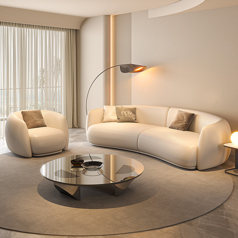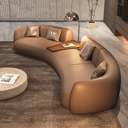 纳威月亮弧形沙发皮艺意式极简客厅真皮沙发小户型轻奢现代高级感