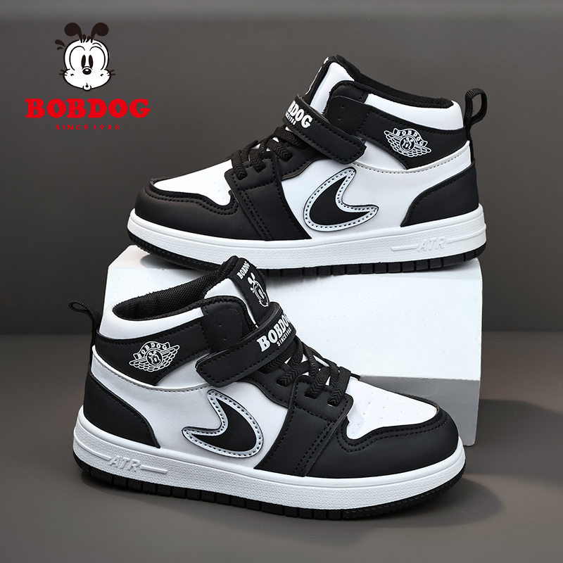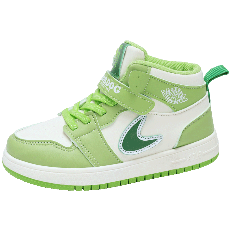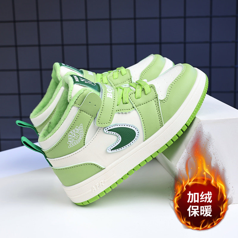 巴布豆儿童板鞋女童秋冬季加绒二棉保暖皮面防水男童绿色运动鞋子