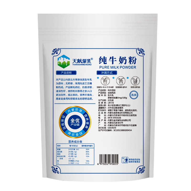 内蒙古纯牛奶粉500克无蔗糖高钙