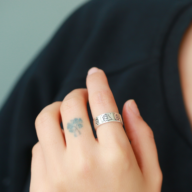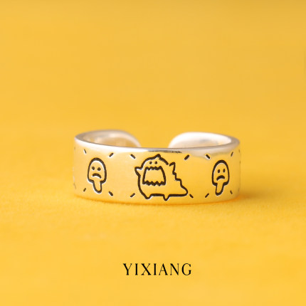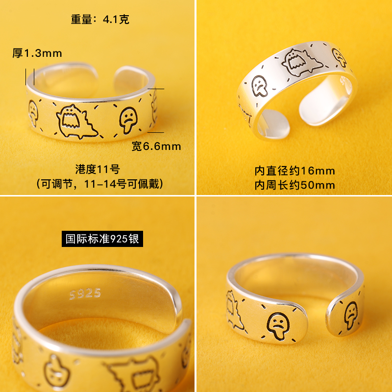 吃掉烦恼的小怪兽宽戒指开口指环 925纯银情侣闺蜜对戒食指戒送礼