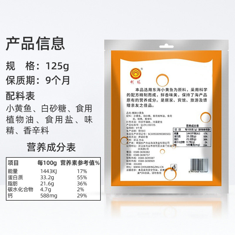 明珠香酥小黄鱼干酥软熟鱼片舟山特产即食海鲜125g休闲零食凑单