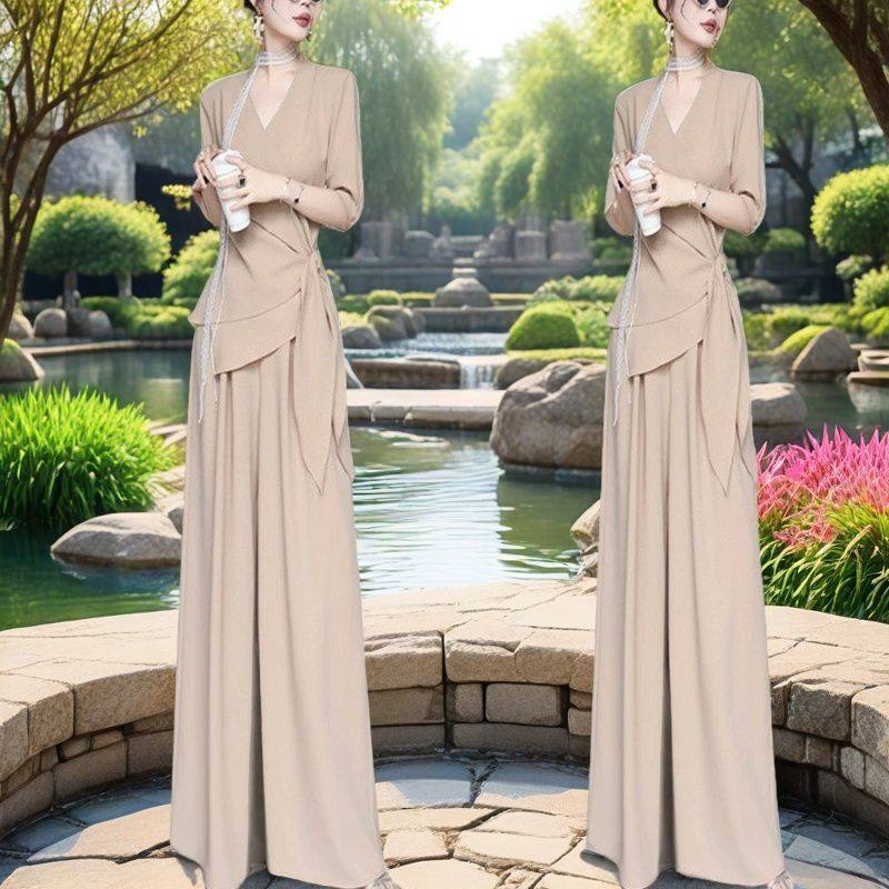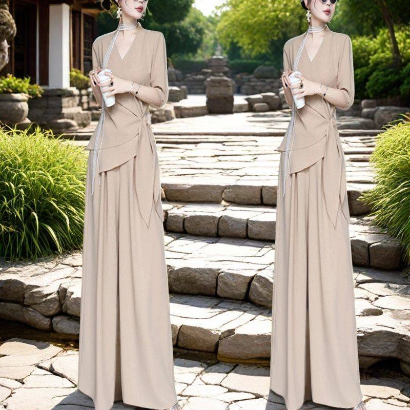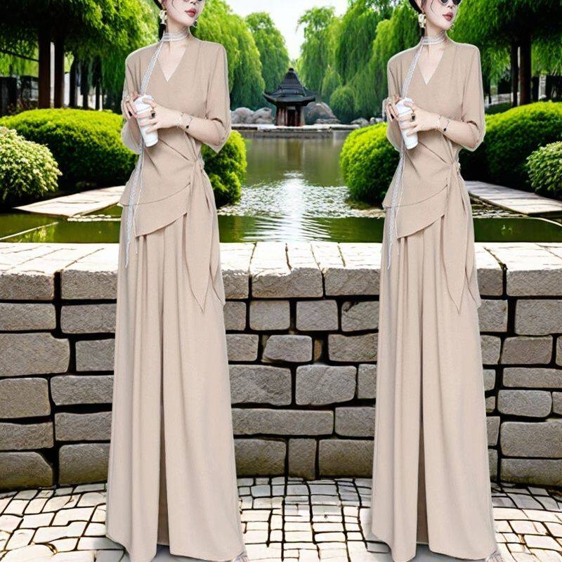 高端大码女装夏季新款时尚套装女胖mm不规则收腰绑带阔腿裤两件套