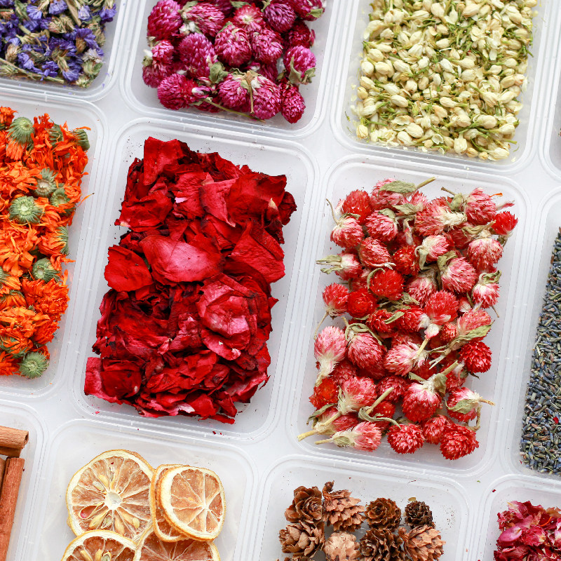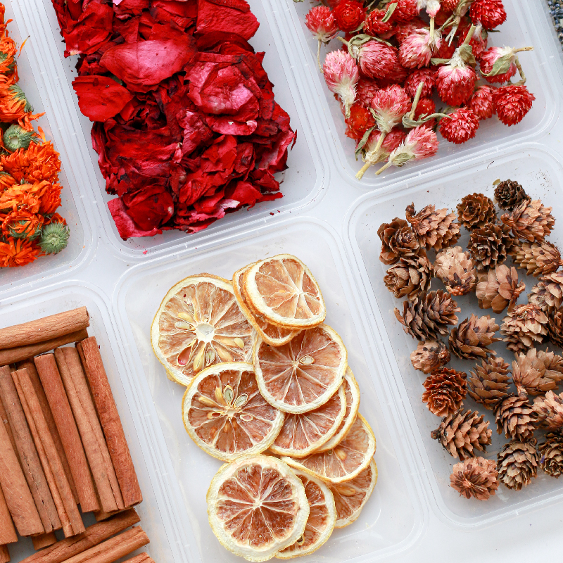 天然干花手工diy材料玫瑰红巧梅薰衣草柠檬肉桂松果香薰蜡烛装饰