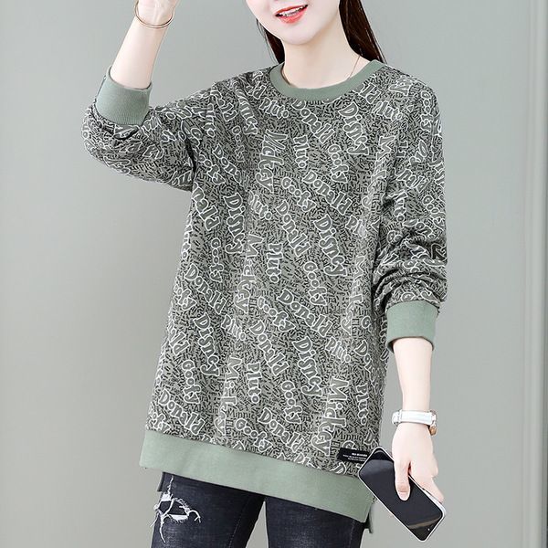 大码女装宽松显瘦时尚减龄上衣2025年秋装新款胖MM长袖T恤卫衣潮