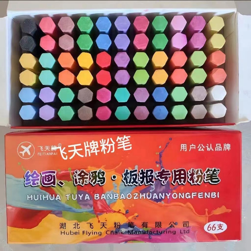 飞天彩色粉笔鲜艳板报无尘无毒儿童教师用绘画黑板报专用六角粉笔