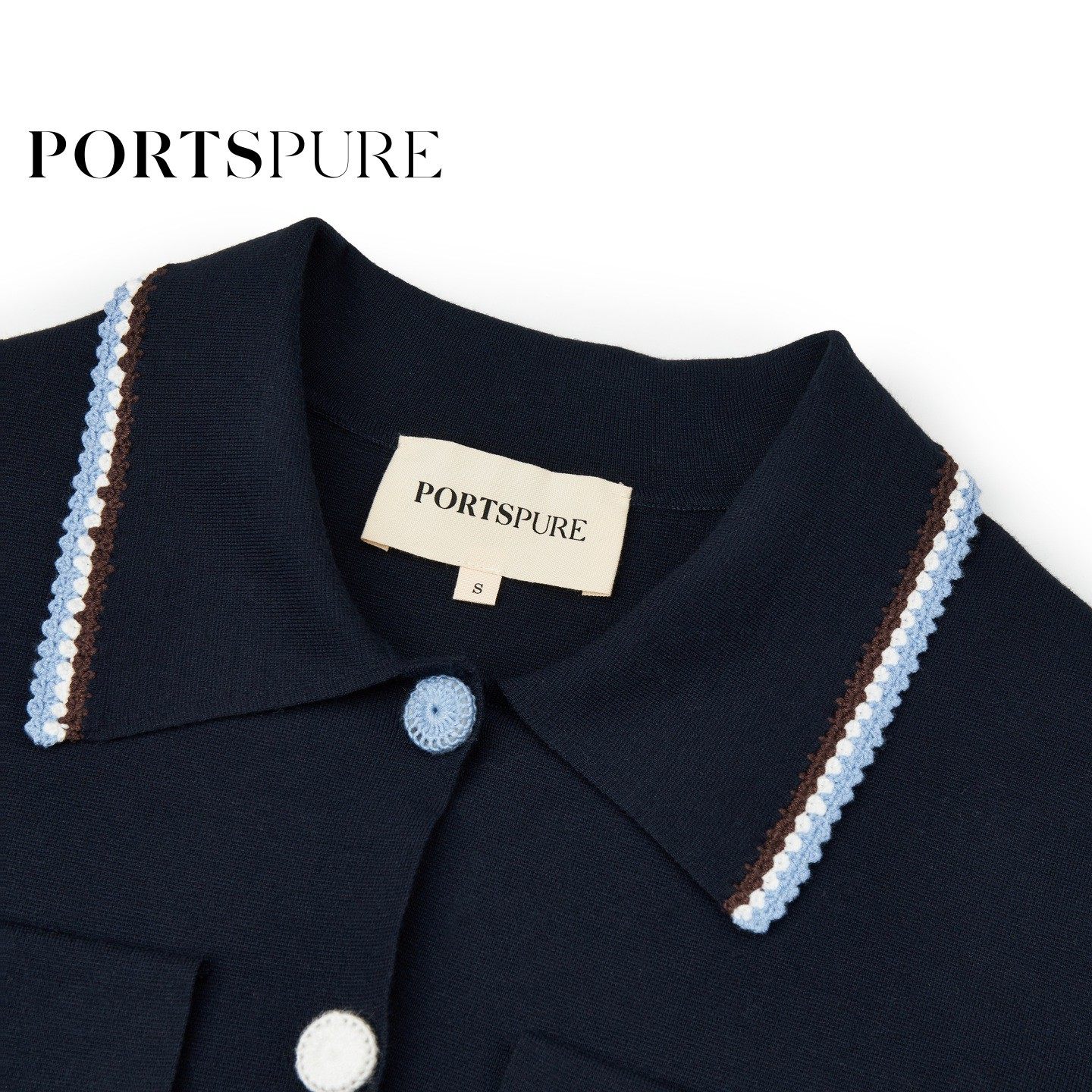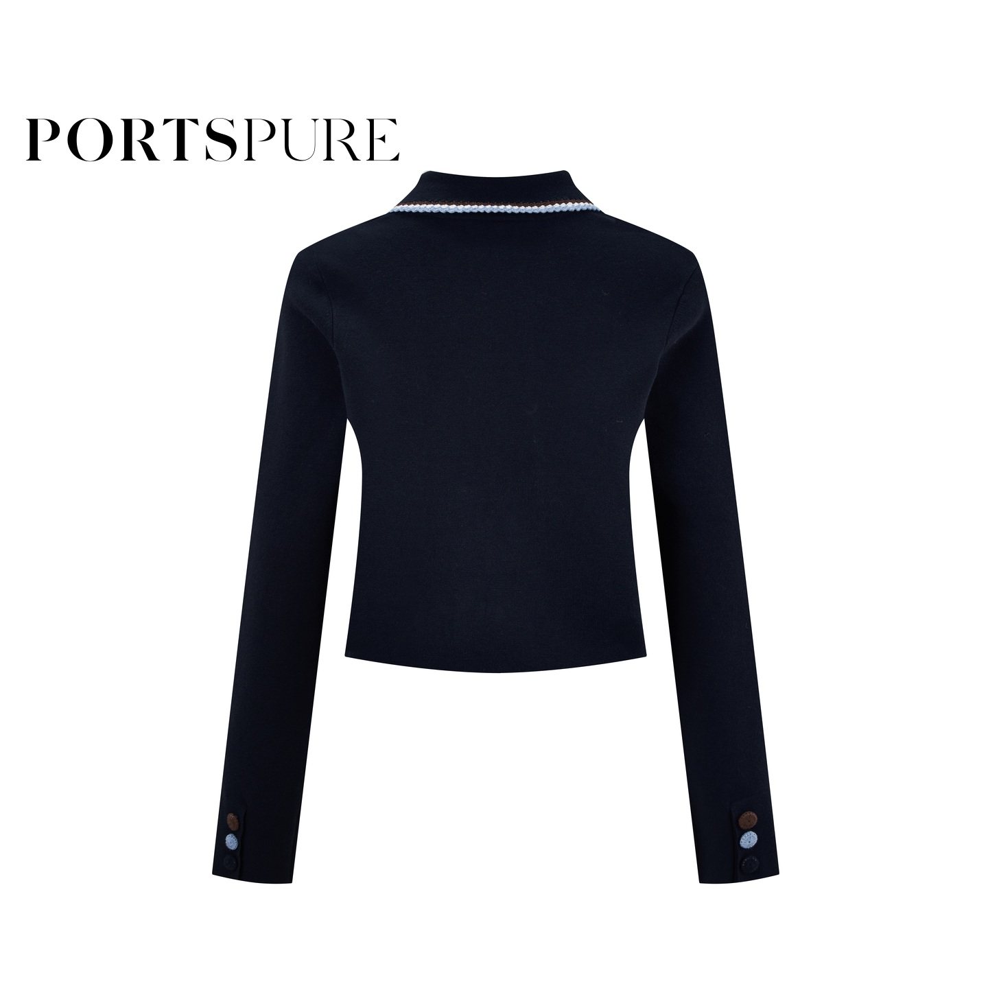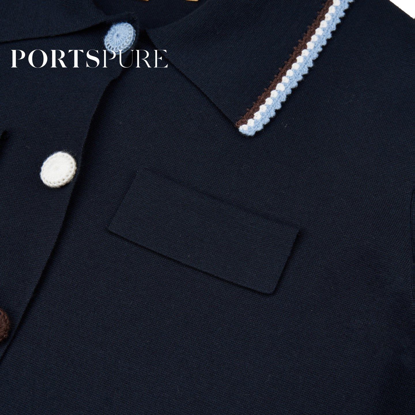 商场同款 宝姿PORTSPURE女装2025秋冬新品设计感撞色夹克针织开衫