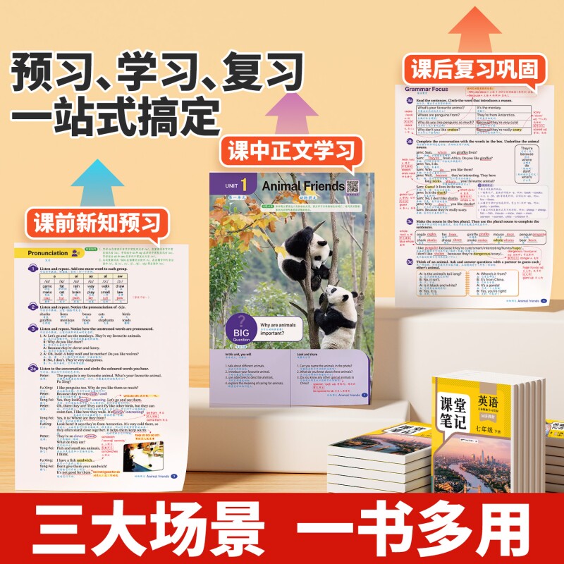 斗半匠2026适用课堂笔记七年级下册上册英语新教材人教版外研版同步初一预习教辅学期中学七上教科书讲解学霸笔记译林版听力题练习