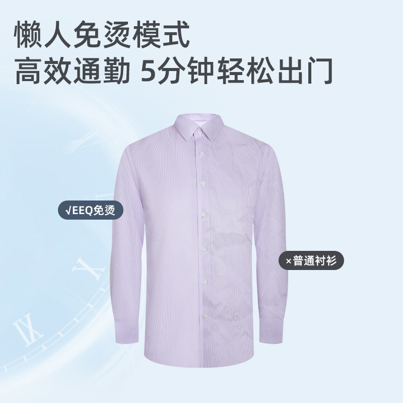 【免烫】乔治白男士秋季长袖尖领条纹标准型衬衫商务通勤休闲
