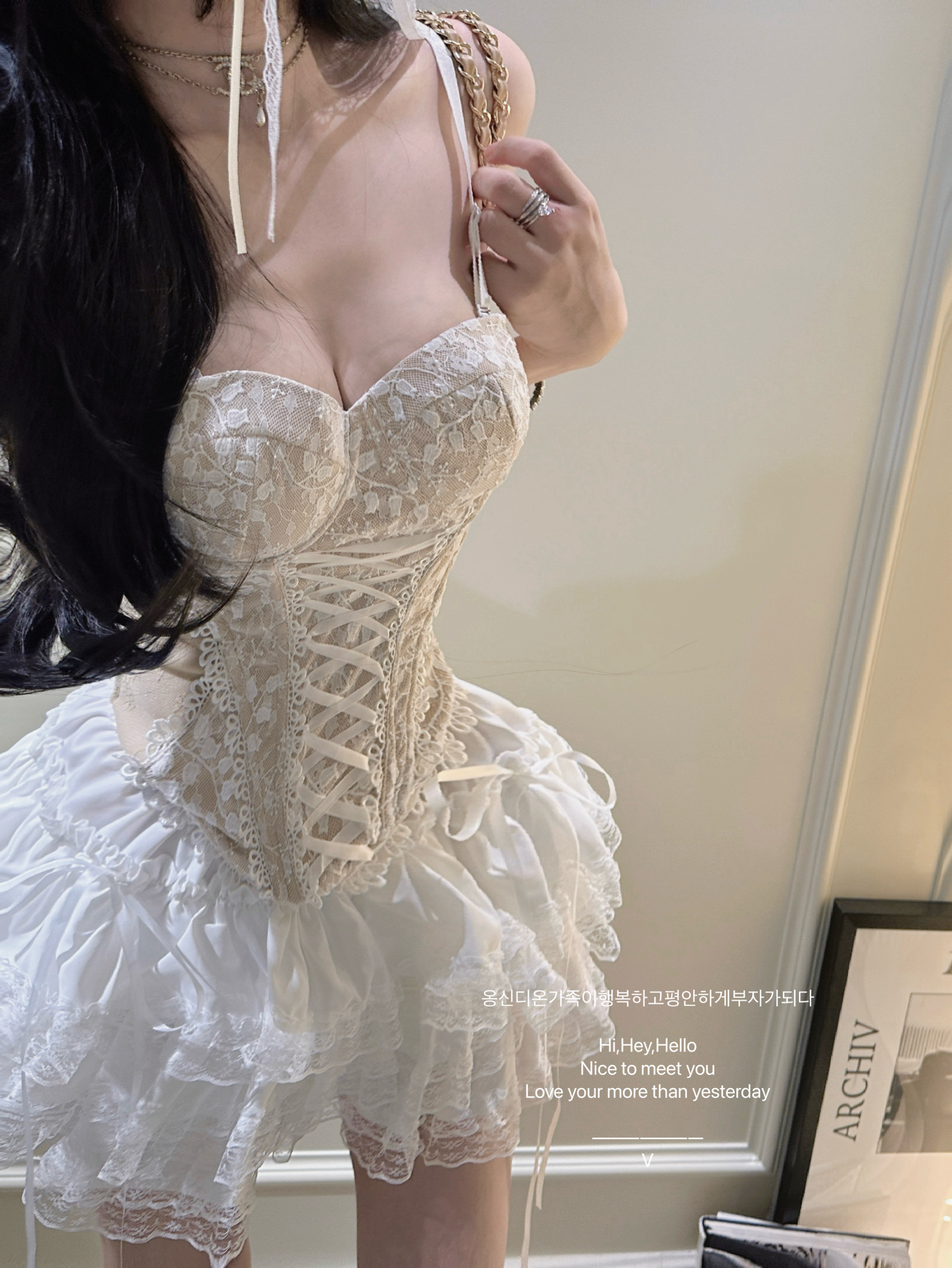 【塞纳里花房】法式千金纯欲少女系带蕾丝显瘦鱼骨吊带蛋糕短裙