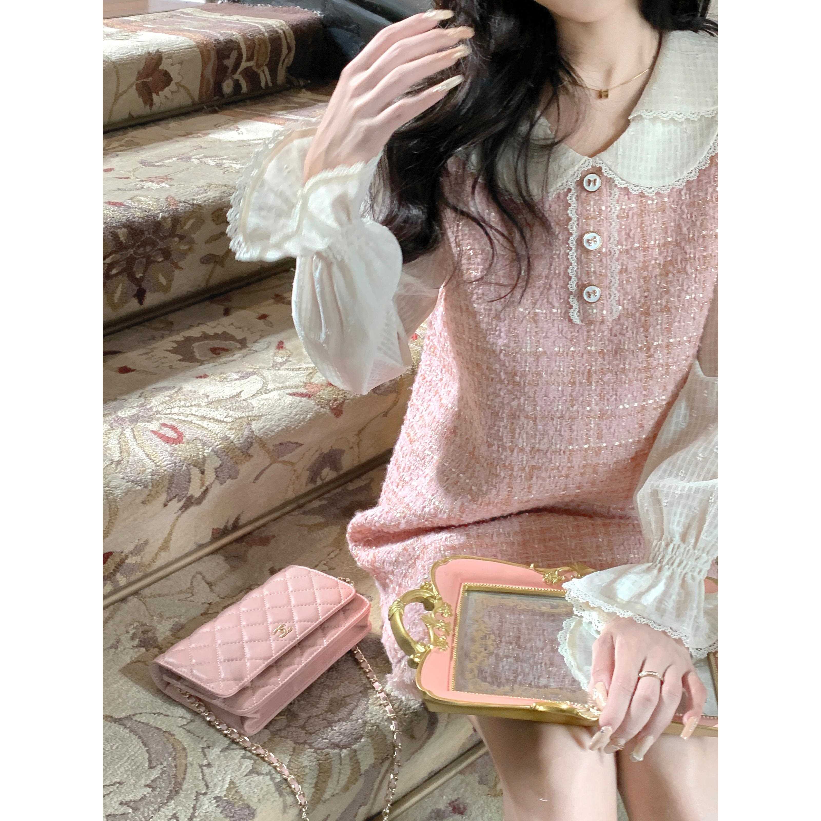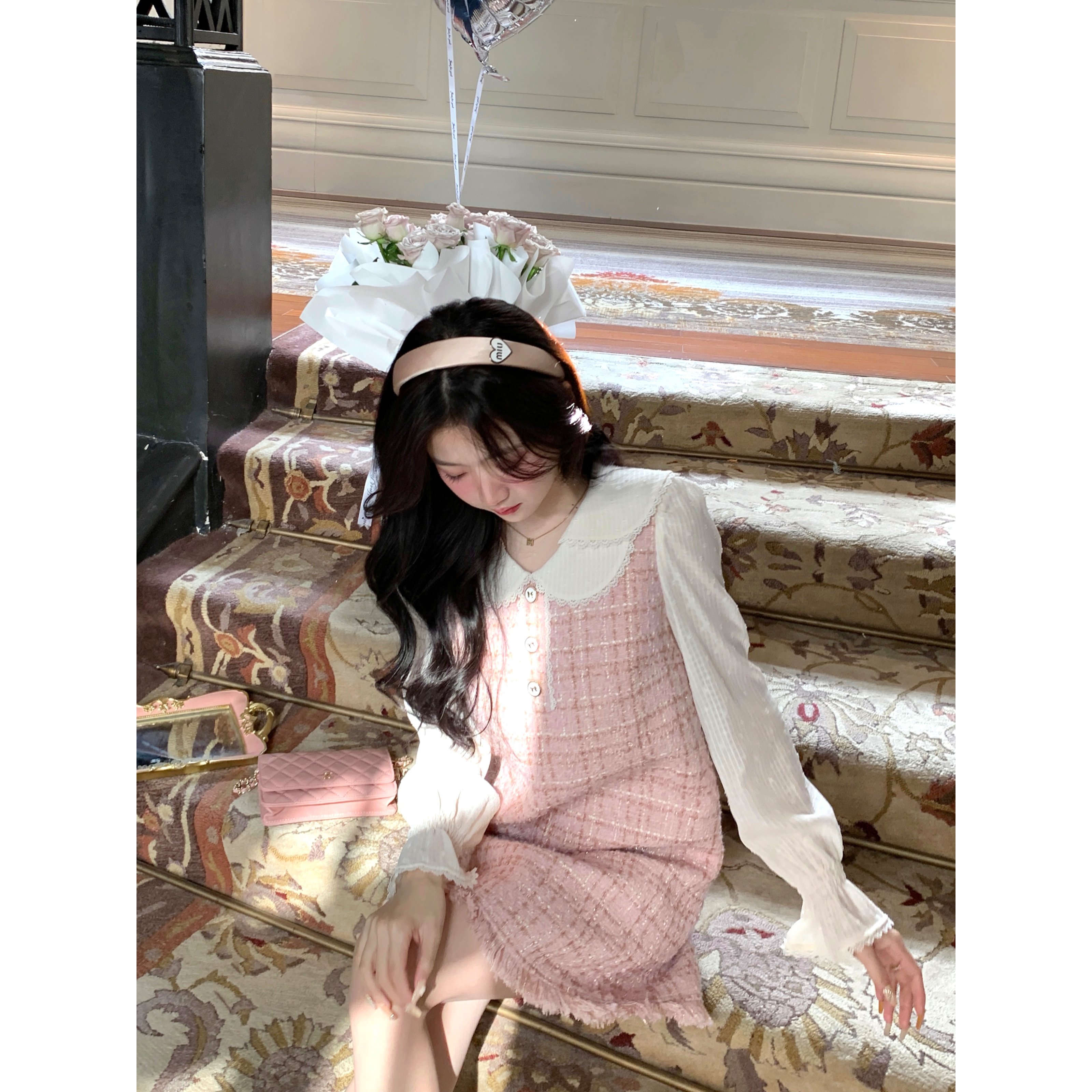 爵莱菲大码胖mm粉色小香流苏连衣裙夏季法式娃娃裙小个子短裙