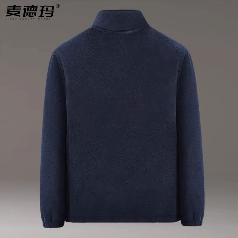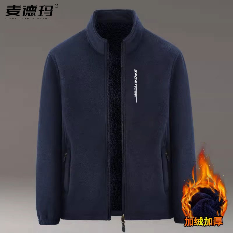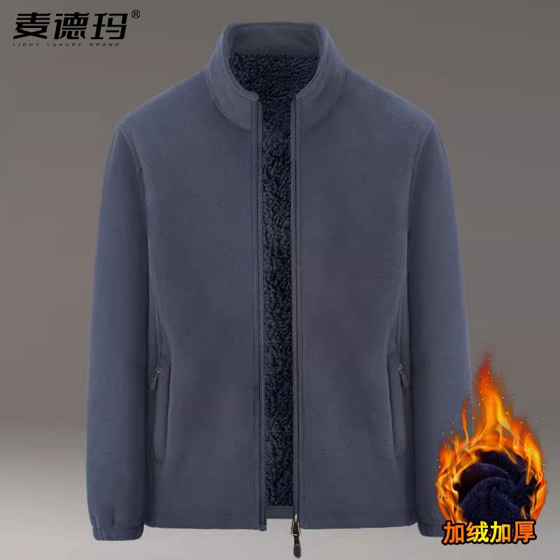 春秋抓绒爸爸外套男立领加绒加厚摇粒绒卫衣男中年开衫保暖上衣