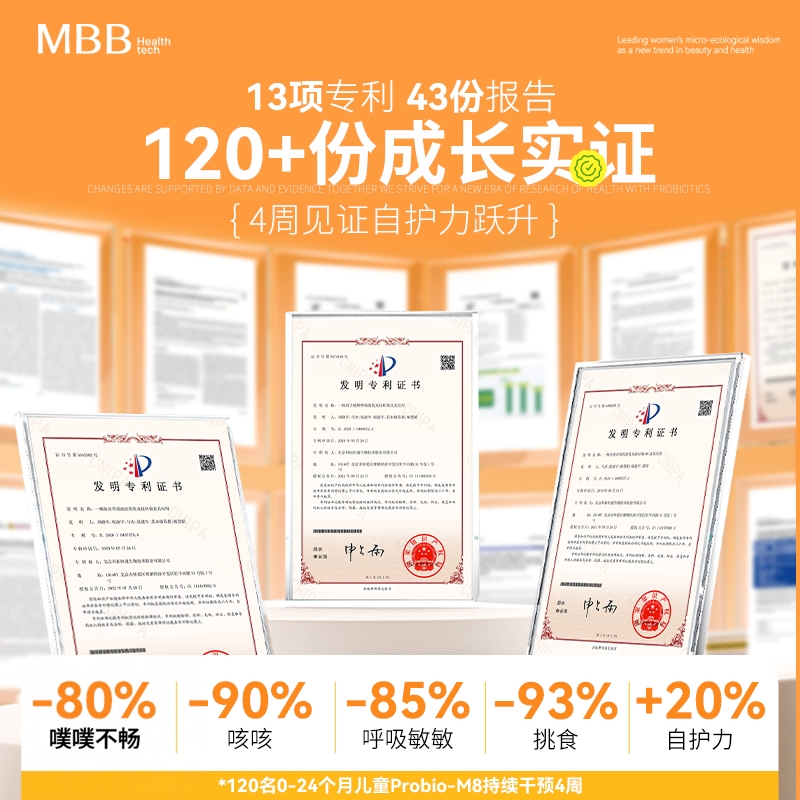 MBB科拓儿童益生菌益彩条肠胃肠道胃口自护成长肠胃菌群300亿活菌