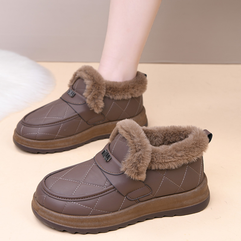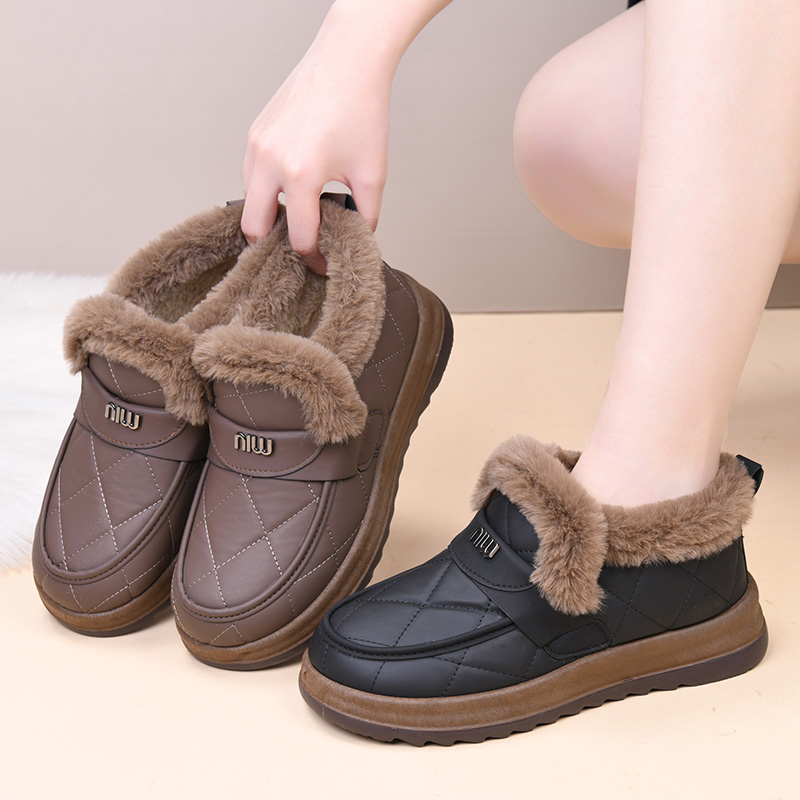 冬季老北京棉鞋女加绒保暖皮面雪地靴加厚防寒软底妈妈鞋短靴防滑