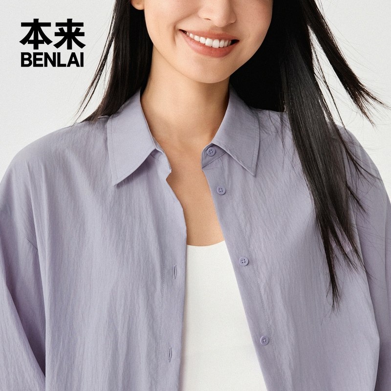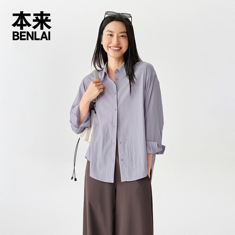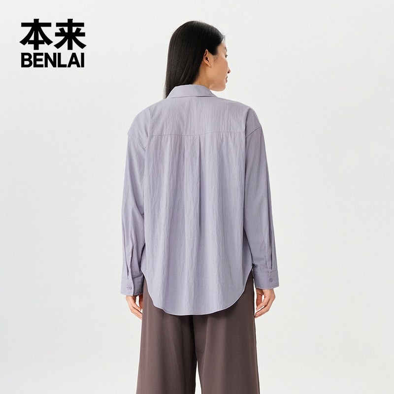 本来BENLAI女士莱赛尔混纺衬衫25秋季新款宽松落肩衬衣BNM250004
