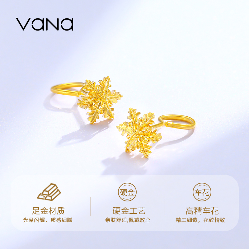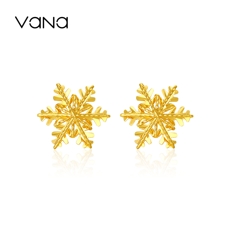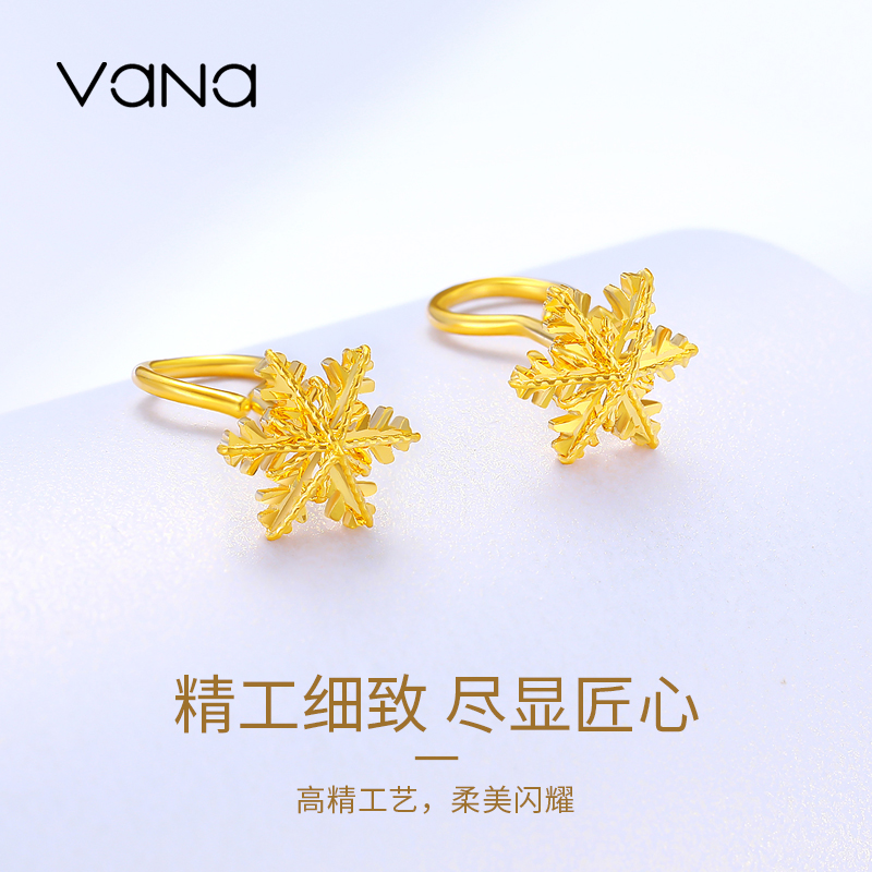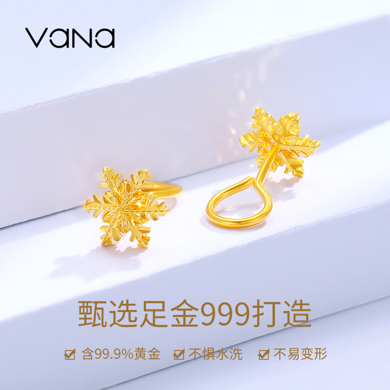 vana足金999雪花耳钉黄金耳环新款24k纯金耳饰生日礼物送女朋友