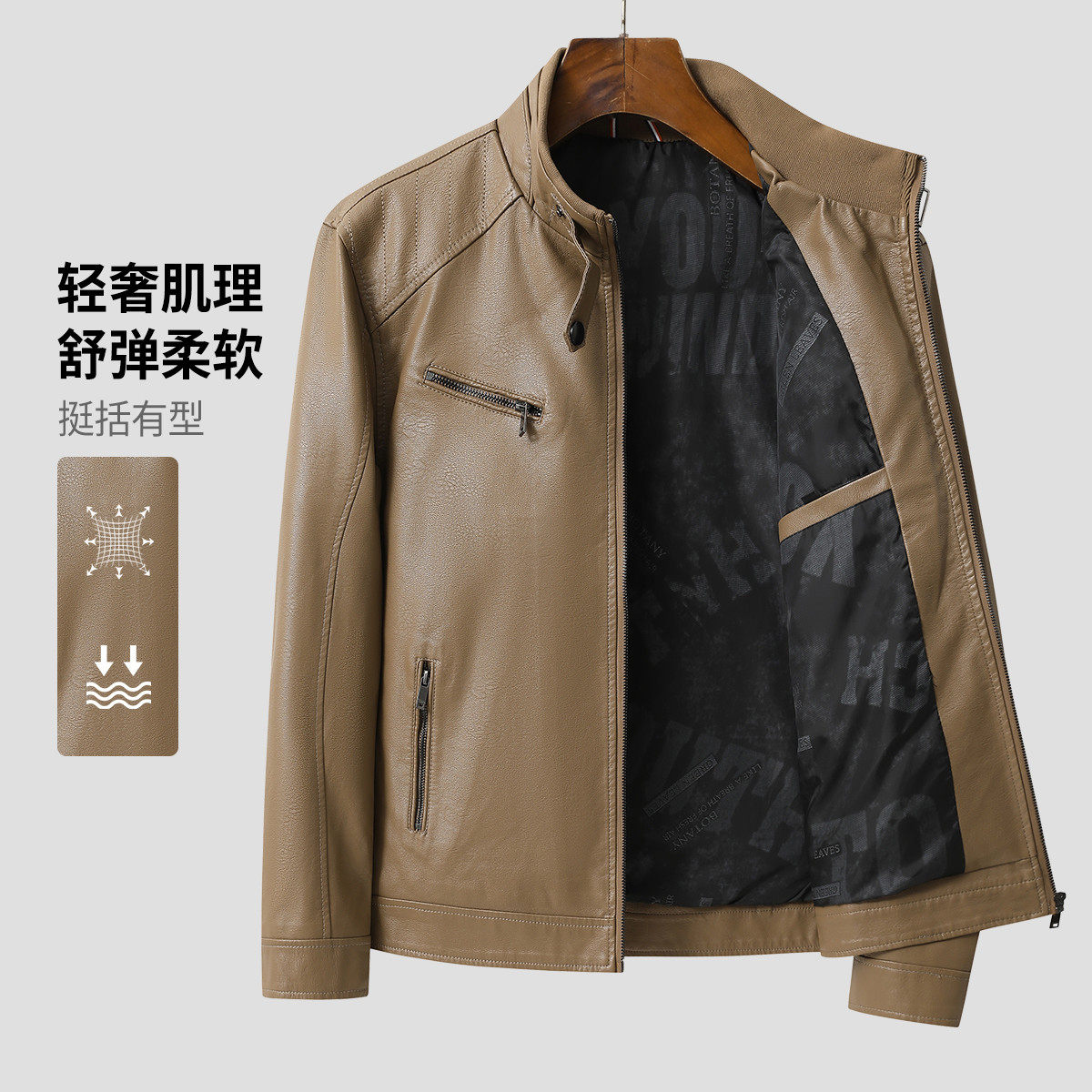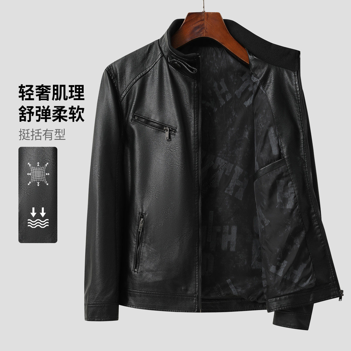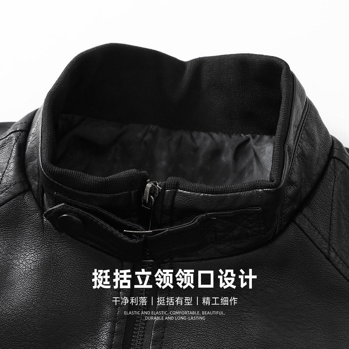 杉杉秋冬新款男士皮衣拉链口袋立领机车服短款pu皮夹克爸爸装外套