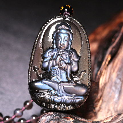 宫妃蓝眼冰种黑曜石本命佛吊坠 大日如来菩萨生肖属羊猴守护神