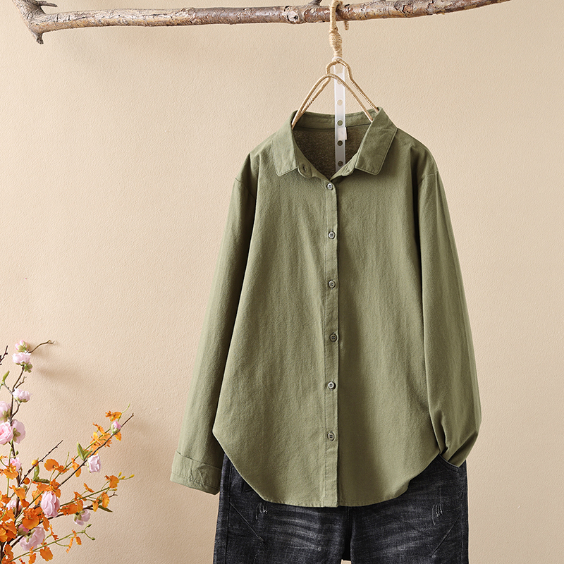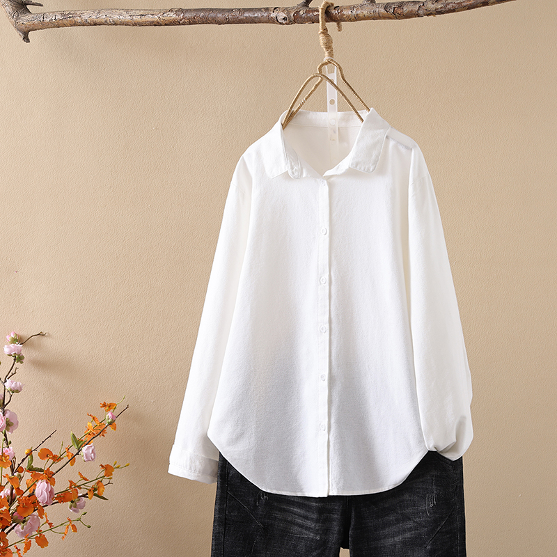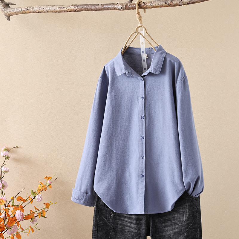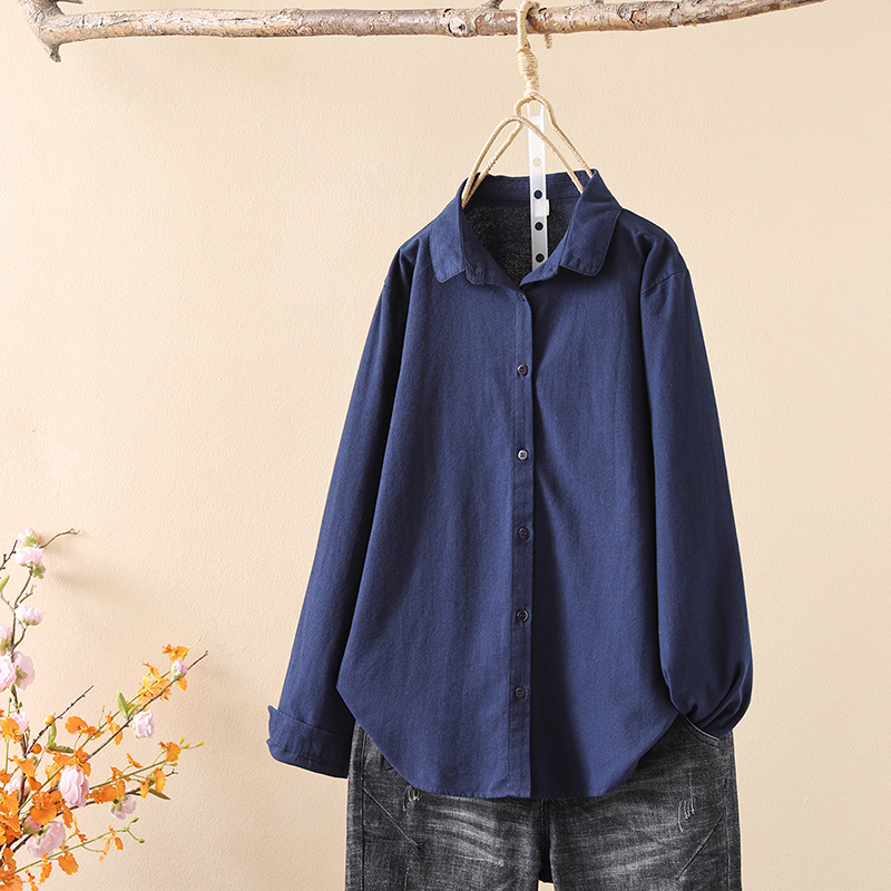 加厚磨毛纯棉衬衫女秋冬新款宽松百搭小个子纯棉打底衬衣休闲上衣