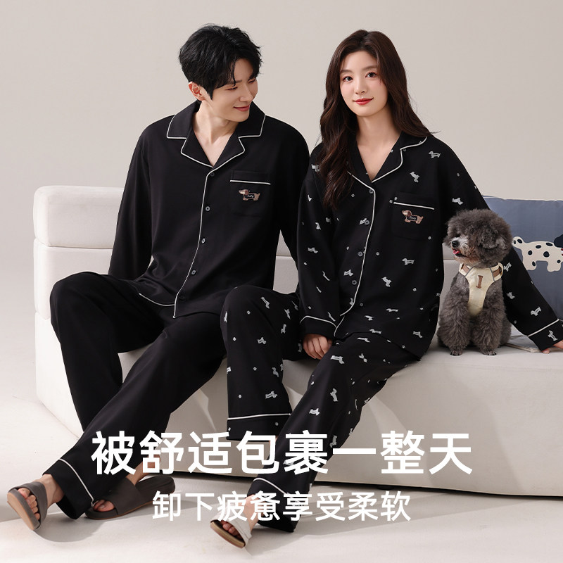 猫人纯棉情侣睡衣春秋季2026新款男女款长袖长裤家居服套装可外穿