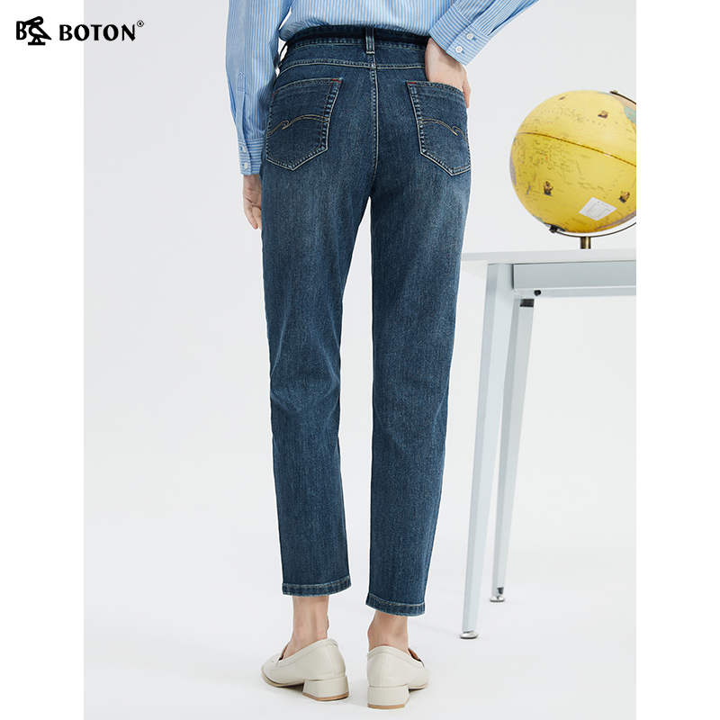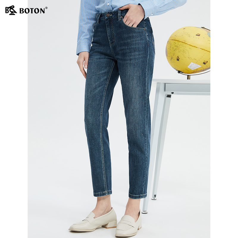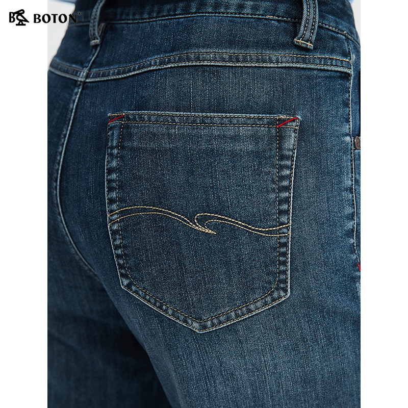 波顿女士2025春夏新款直筒修身中高腰牛仔裤高端美式休闲弹力裤子