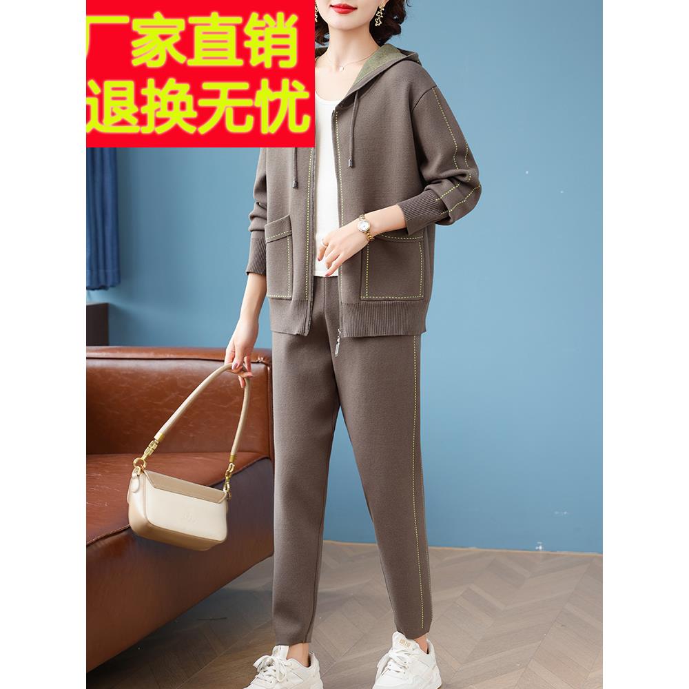 妈妈时尚运动服中年女装秋装休闲外套中老年春秋2025新款针织套装