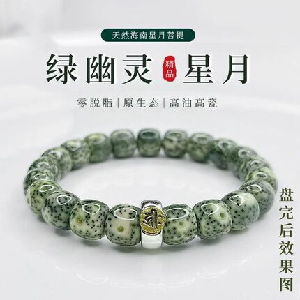 十二生肖海南星月菩提手串男女绿阴皮石玉料盘玩文玩本命佛珠手链