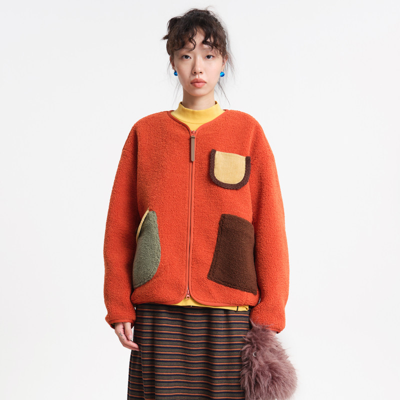 MOVEUP幻走2025冬季新款.FUN系列撞色贴袋包边收口复古短款外套女
