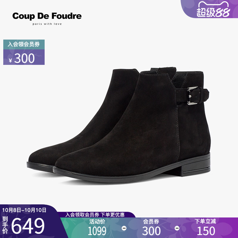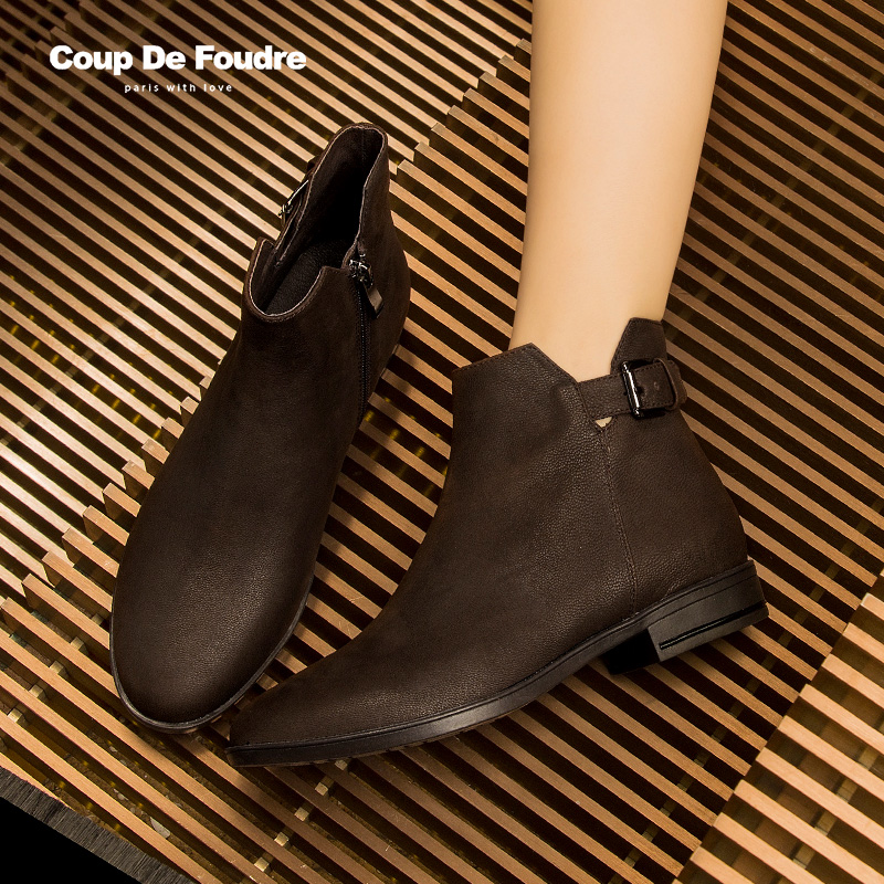 CDF女鞋轻奢时尚秋冬百搭真皮羊皮短靴女粗跟磨砂单靴马丁靴棉靴