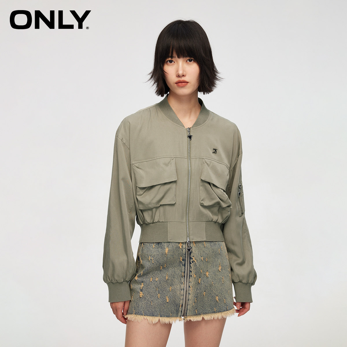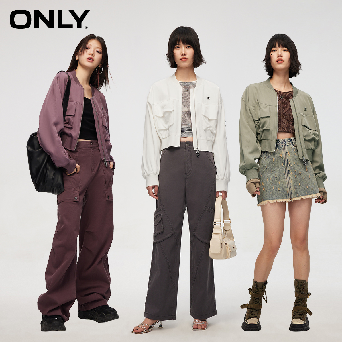 【新】ONLY25春夏新潮流休闲立领落肩短款棒球服外套女士
