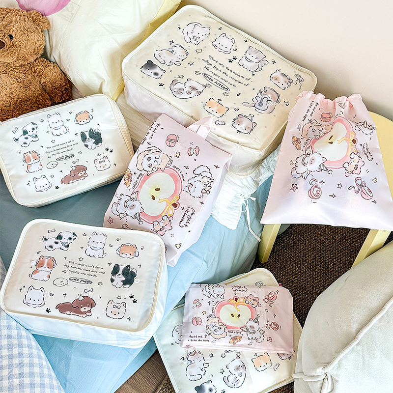 一圈小猫卡通旅行收纳袋出差衣物内衣分装袋整理包旅游包7件装