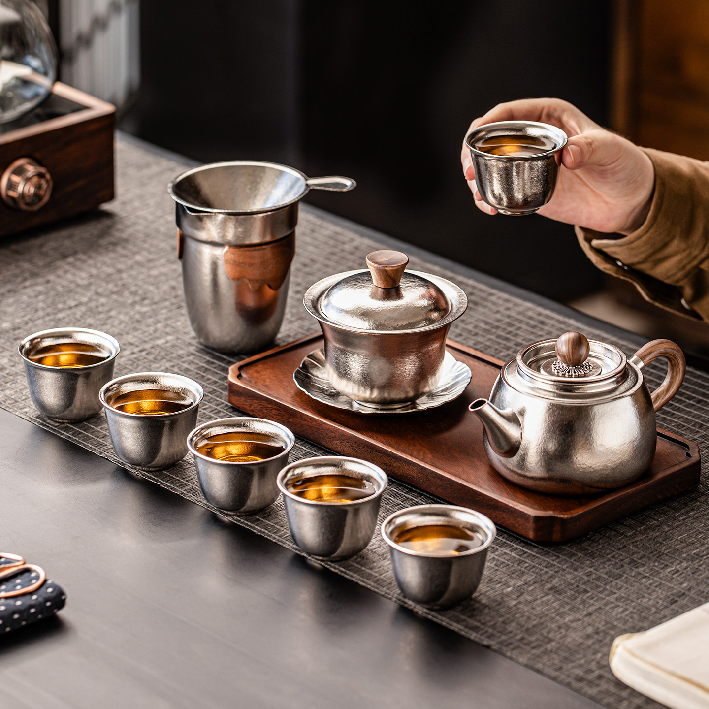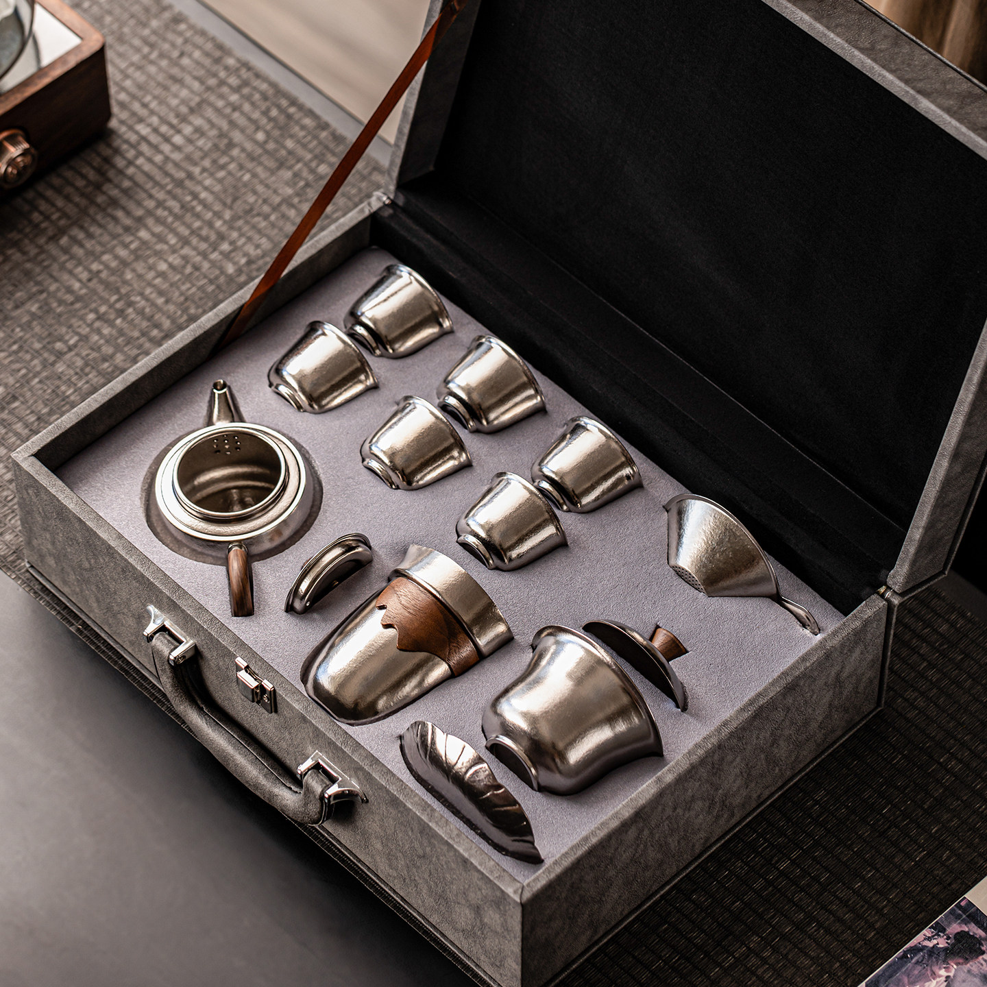 瓷牌茗纯钛三才盖碗泡茶壶功夫茶具套装家用轻奢茶杯喝茶器礼盒装