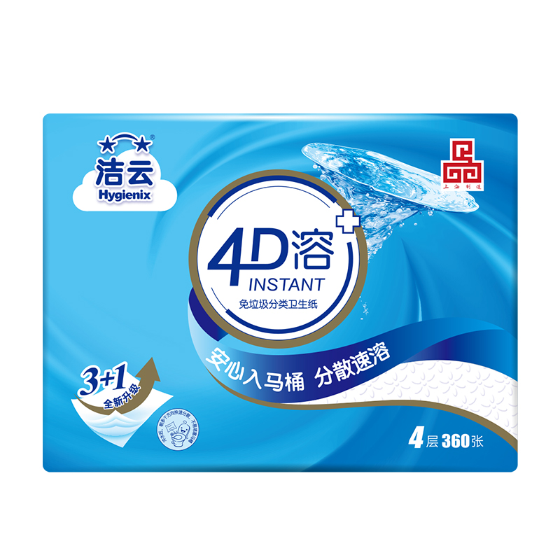 【下拉详情享优惠】洁云平板方包卫生纸4D溶+4层加厚速溶厕纸整箱