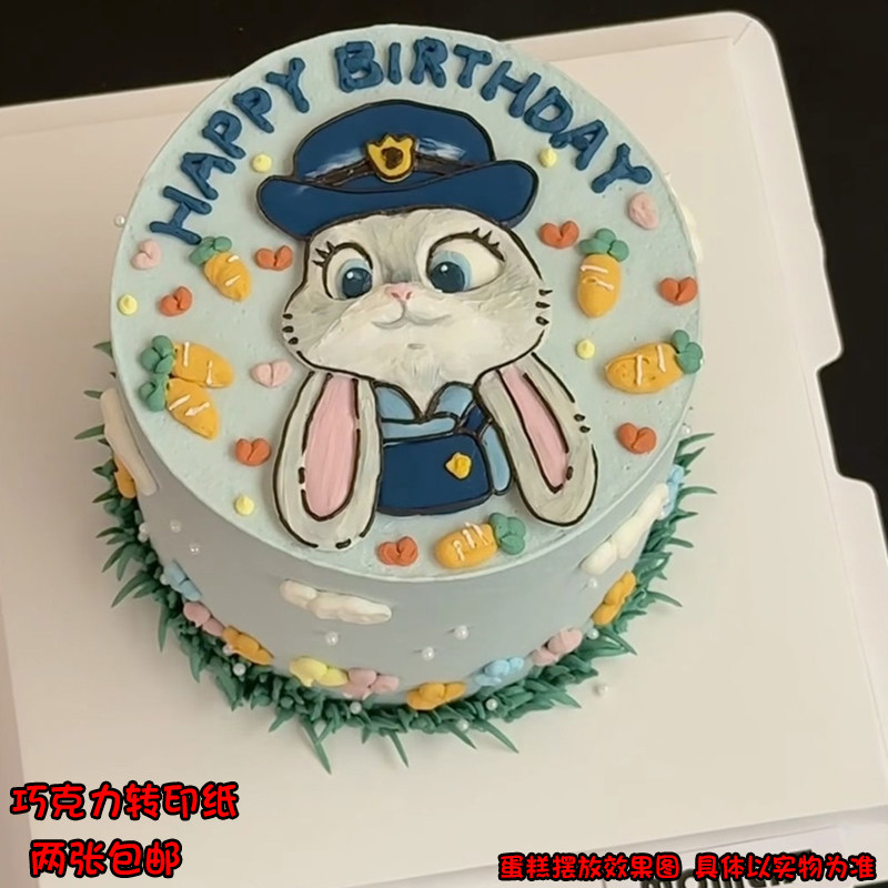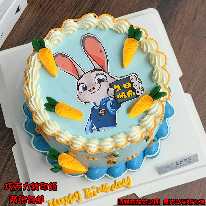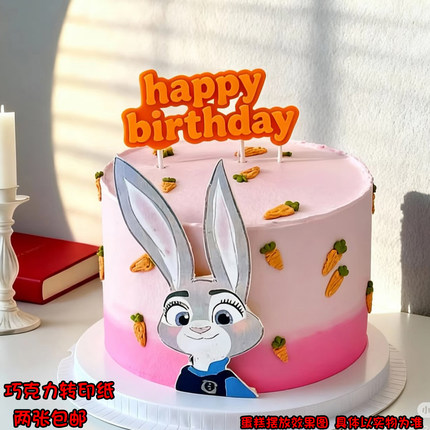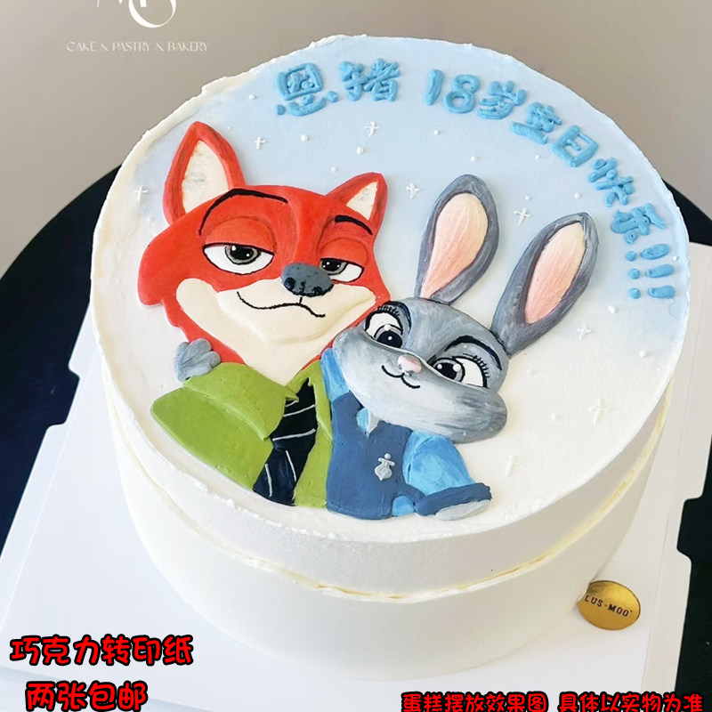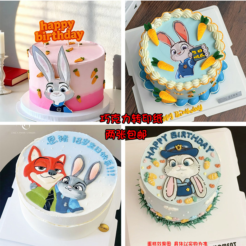 疯狂动物城朱迪狐尼克兔子狐狸巧克力转印纸卡通生日蛋糕装饰定制