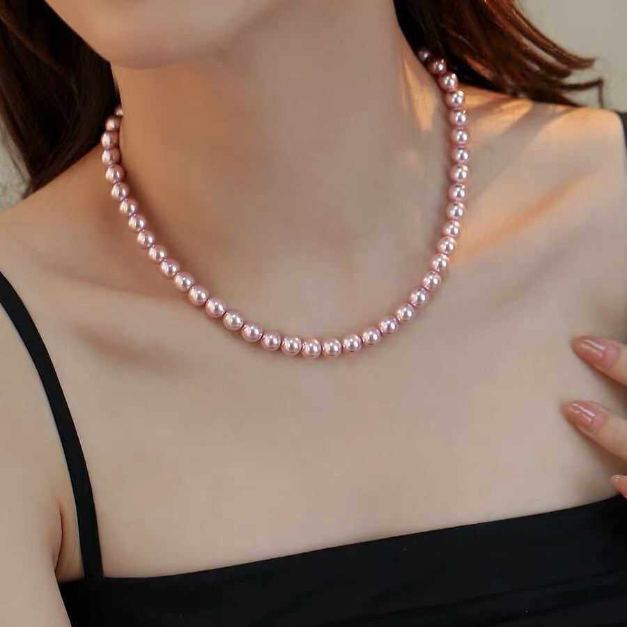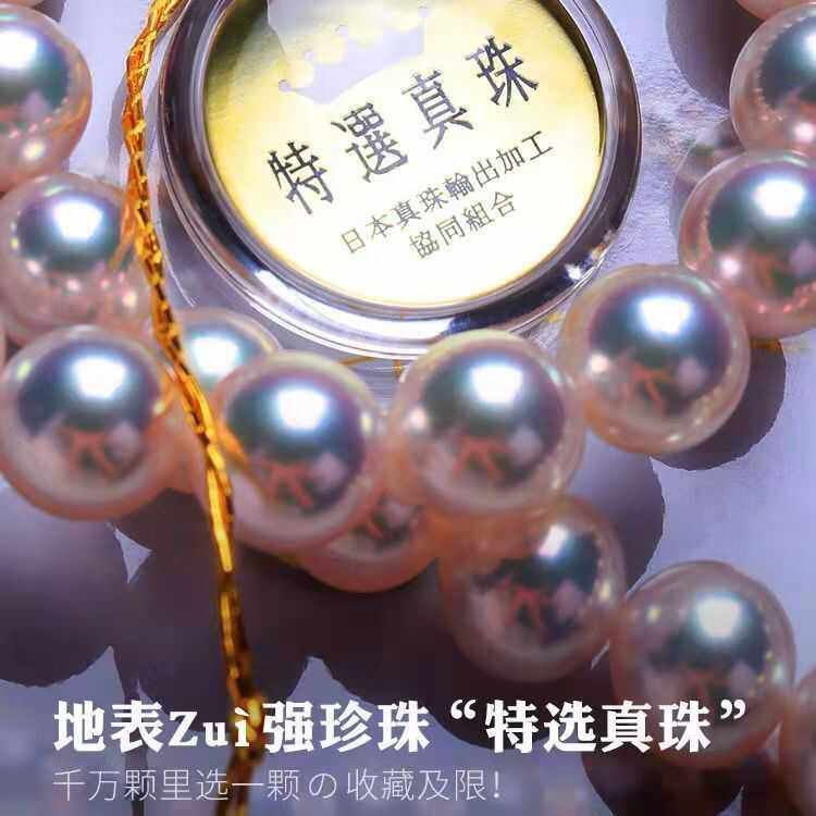 日本海水akoya珍珠项链天女天然色樱花粉无暇极强光送女友妈妈链