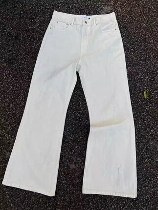 AMBSOM*13盎司丹宁骨白色蓝色暗纹复古水洗白牛vintage微喇牛仔裤