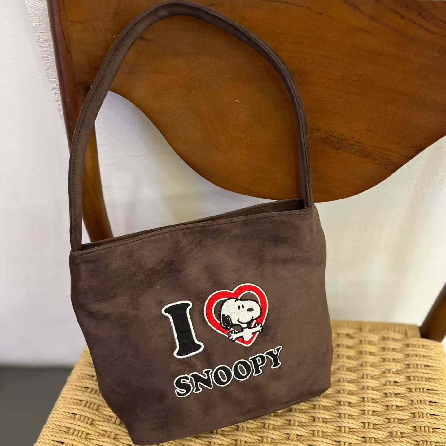 毛绒豹纹刺绣史努比手提包韩国东大门lejunev新款单肩腋下包女包