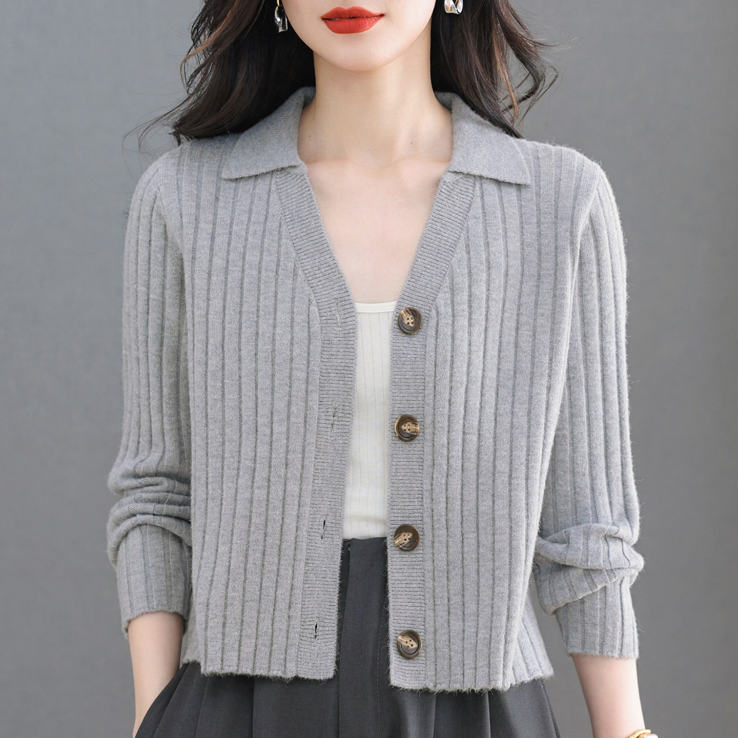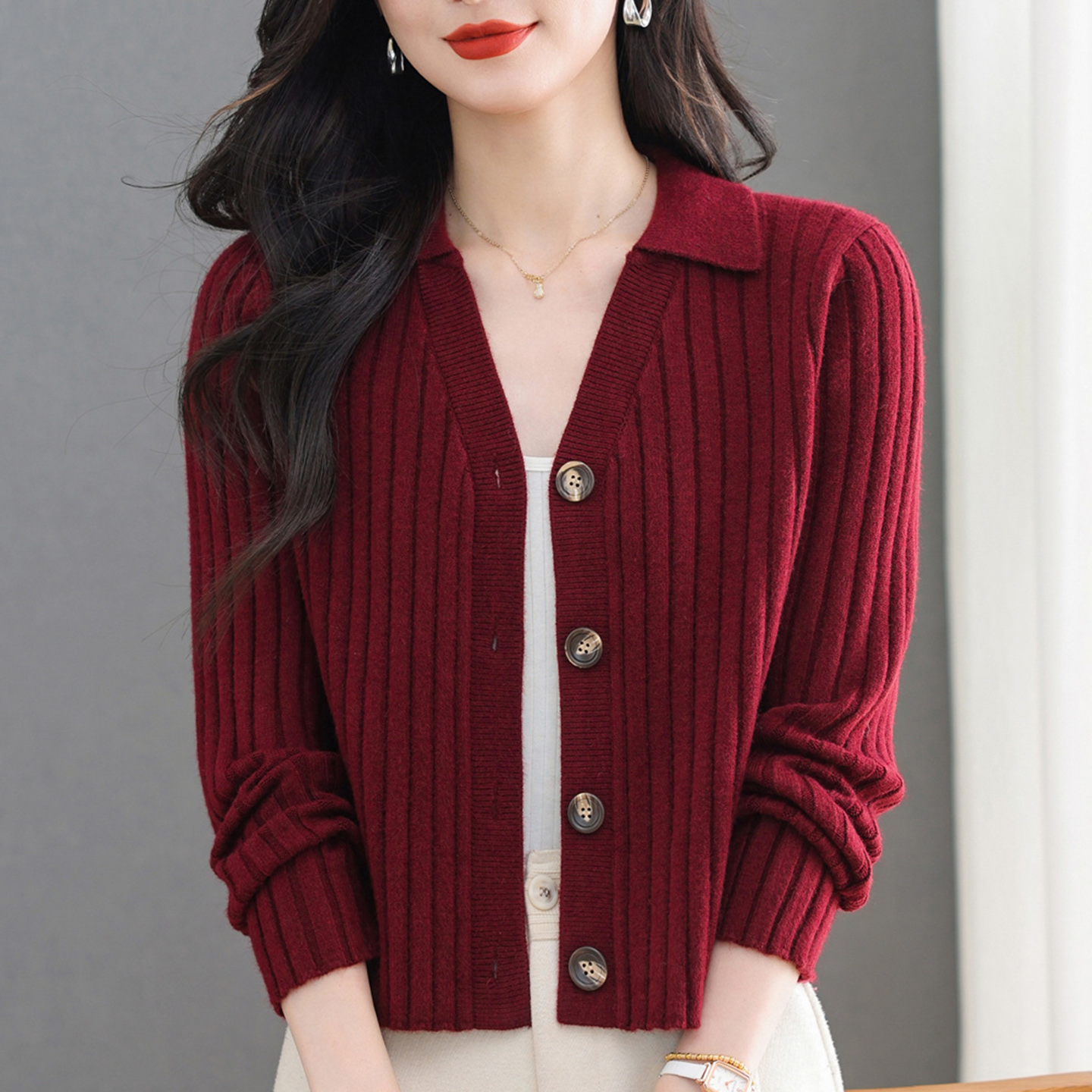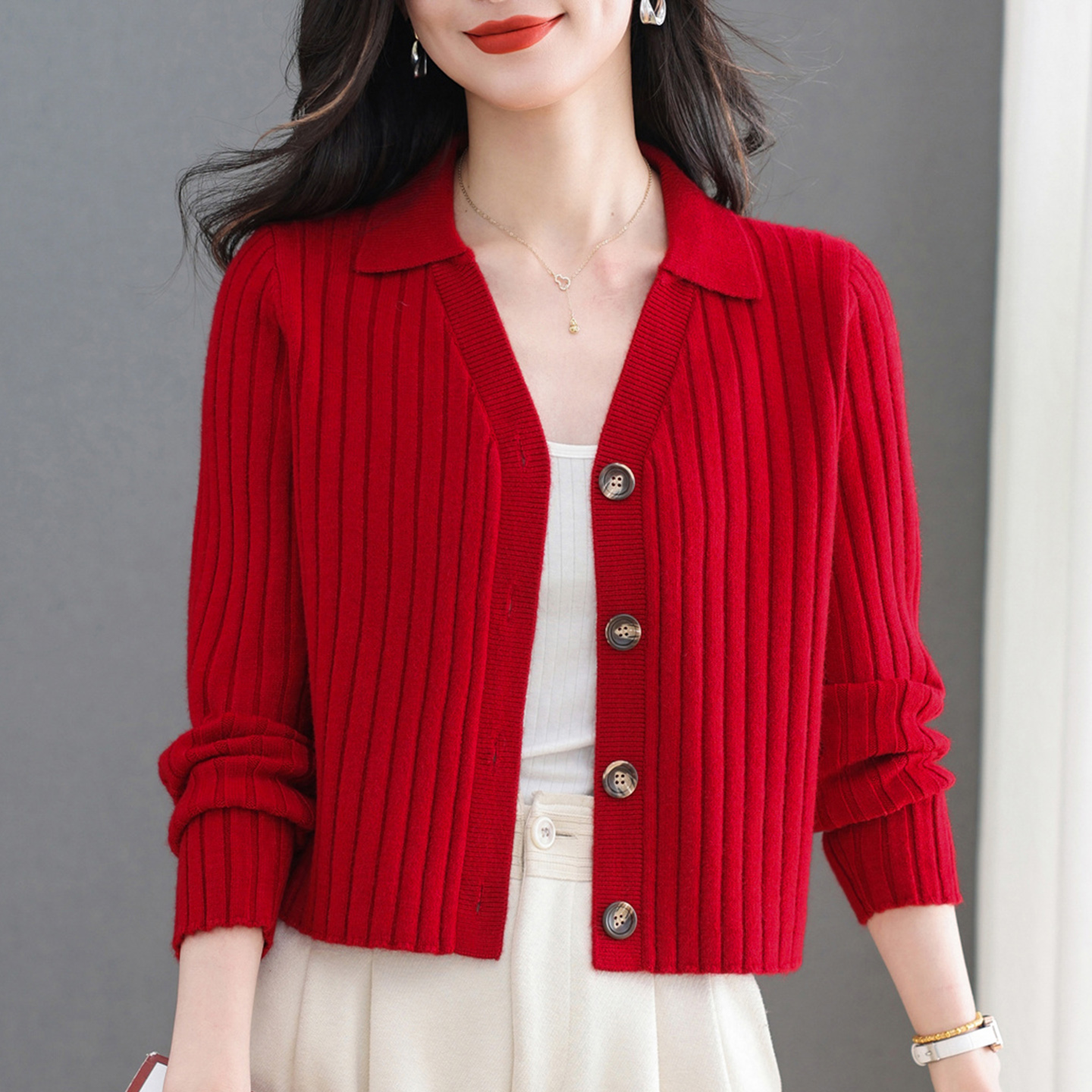 秋冬女士翻领毛衣开衫外套2025新款针织外搭高级感配裤子宽松上衣