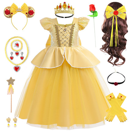 欧美爆款真人贝尔公主裙女童cosplay美女与野兽扮演服装蓬蓬礼服