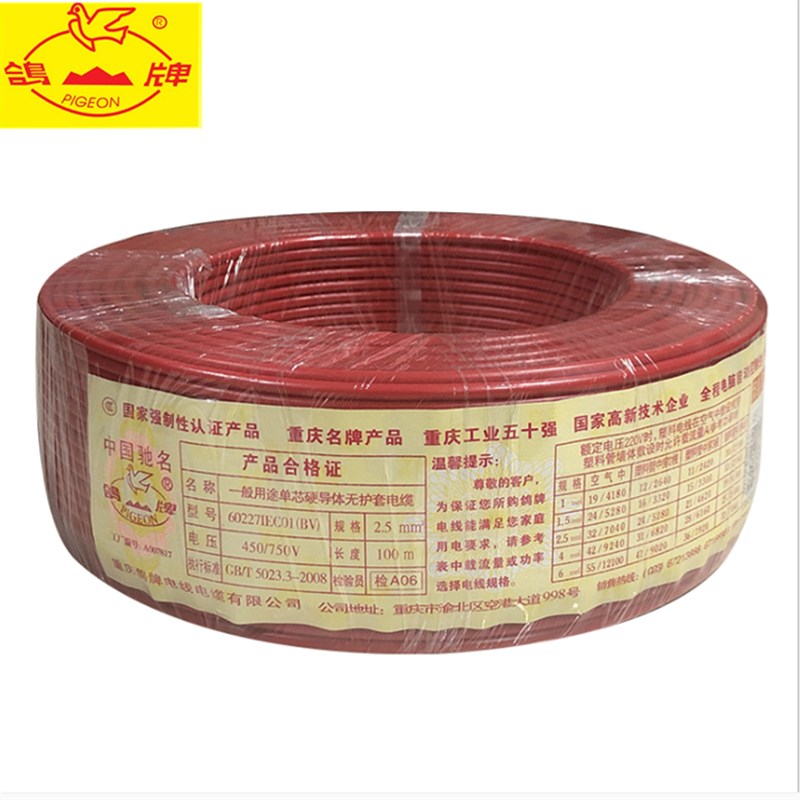 鸽牌电线阻燃家装ZRBV-1.5/2.5/4/6平方铜线国标铜芯家用单芯硬线