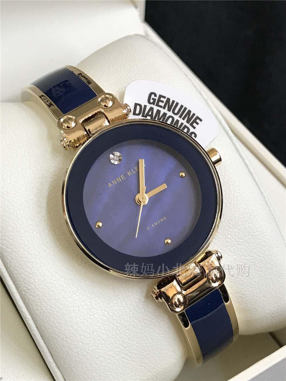 现货美国Anne klein 1980藏蓝色手镯款女士石英手表