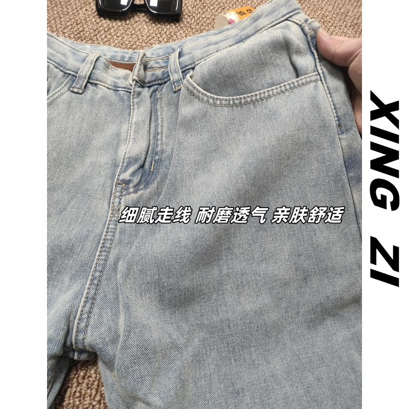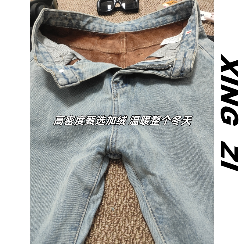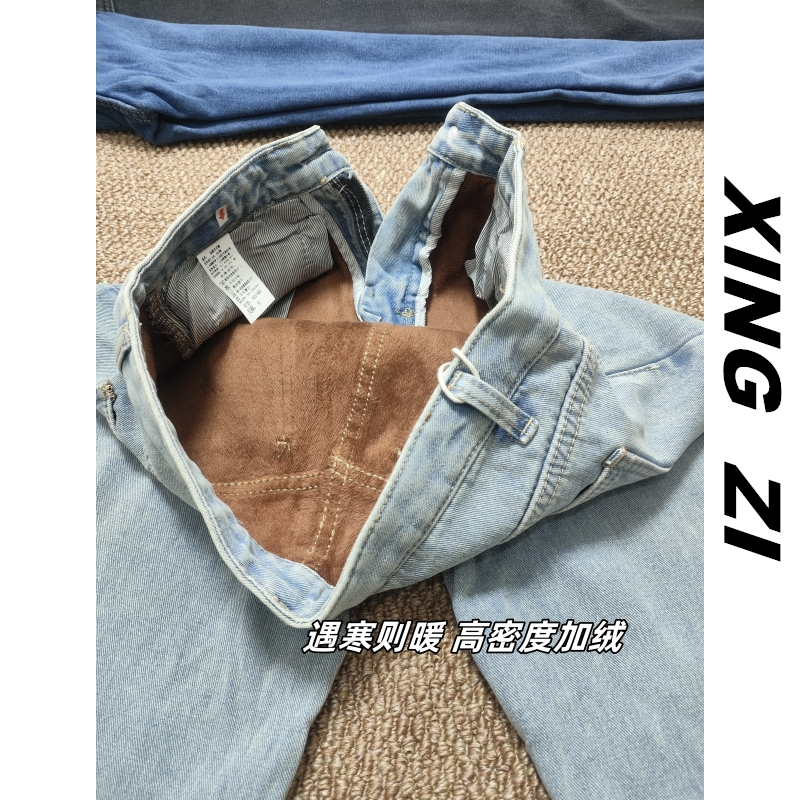 日系复古直筒加绒牛仔裤男款秋冬季宽松休闲潮流百搭微阔腿九分裤