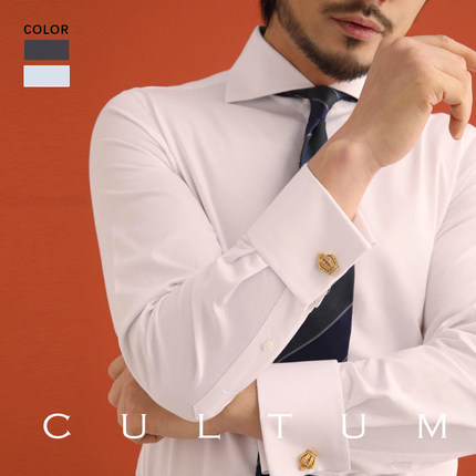 CULTUM100支双股纯棉温莎领长袖衬衫DP免烫抗皱男法式袖口衬衣
