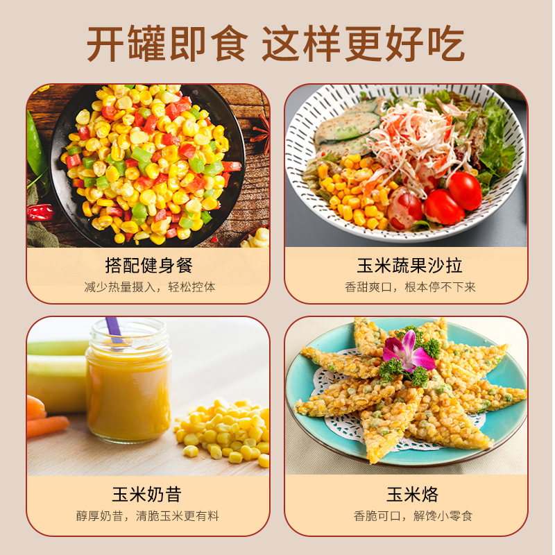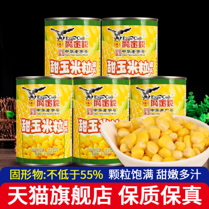 即食玉米罐头425g*5罐新鲜低脂榨汁沙拉烘焙原料商用甜玉米粒罐头