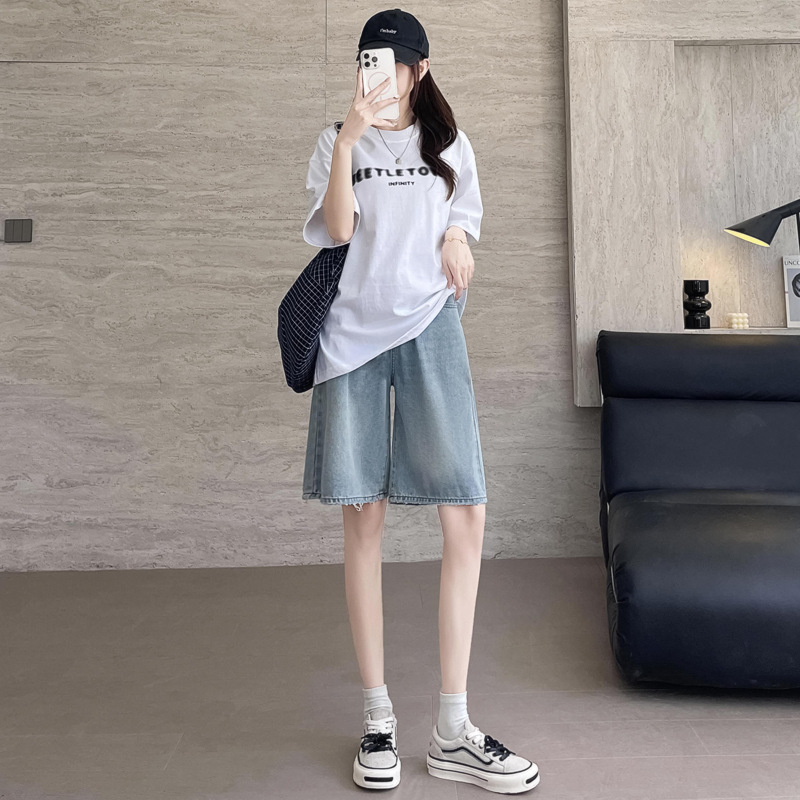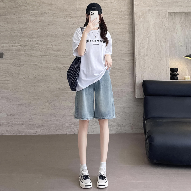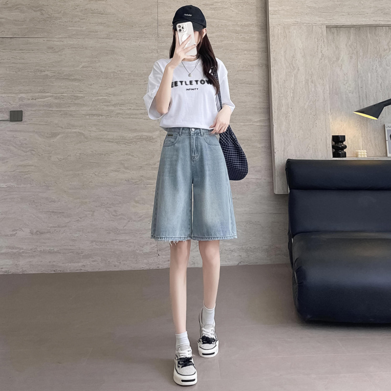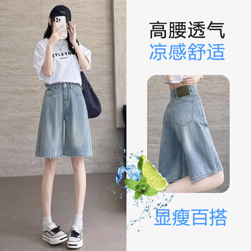 美式复古阔腿五分牛仔中裤女2025秋冬秋季高腰显瘦宽松直筒短裤子