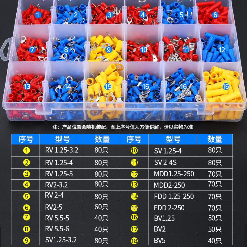 18合一管型预绝缘端子冷压端子压接头端头1200只组合盒装
