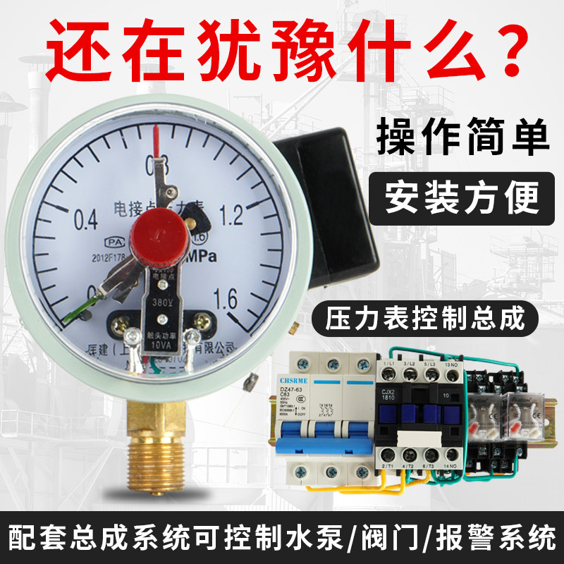 耐震电接点压力表YX100水压压力控制开关0-0.6mpa防爆磁助式220V