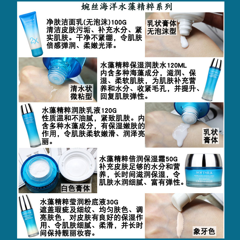 婉丝化妆品海洋水藻精粹系列套装保湿滋润亮肤补水露乳霜粉底洁面