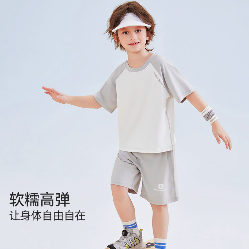 猫人男童短袖t恤2025新款a类速干衣儿童男孩运动套装防晒轻薄冰丝