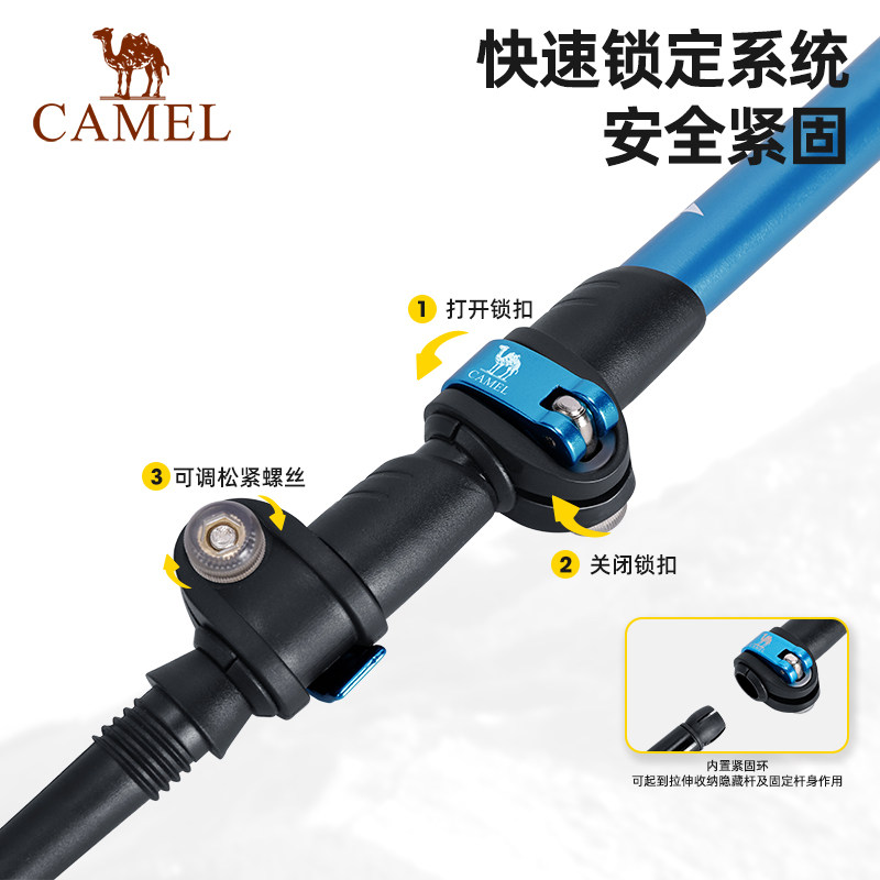 骆驼户外铝合金登山杖手杖轻量伸缩拐棍徒步爬山装备老人拐杖防滑